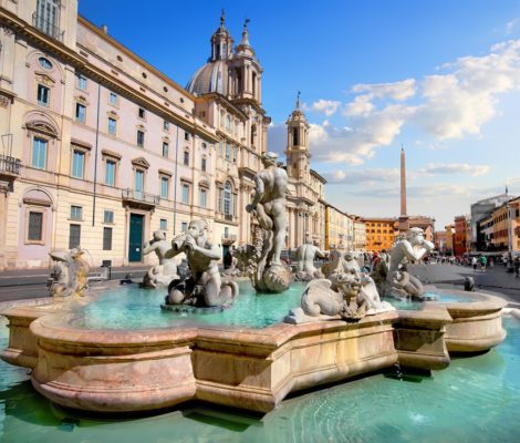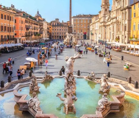 Meydanda yer alan 3 çeşmenin en ünlüsü ise Bernini tarafından tasarlanan Dört Nehir Çeşmesi. Roma döneminden kalma bir obeliskin bulunduğu Dört Nehir Çeşmesinde dünyanın dört büyük ırmağını olan Nil, Rio…