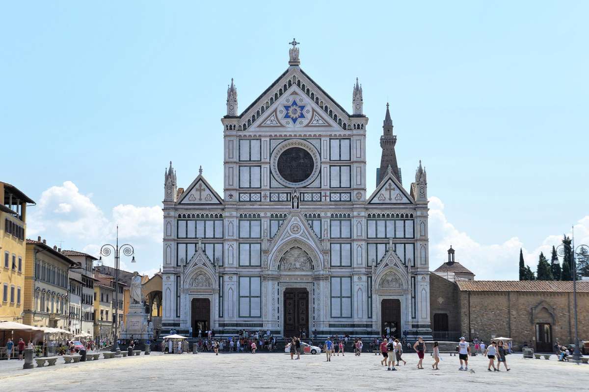 Aynı isimli meydanda bulunan bazilika 13. yüzyılda inşa edilmiş. Fransisken mezhebinin en büyük kilisesi. Giotto’nun öğrencileri tarafından süslenmiş.Bulunduğu bölgede eski bir Roma yapısı varmış. Rivayete göre sanat eserleri karşısında heyecandan bayılma hadisesi “stendhal sendromu” nun ilk kez ortaya cikmış. Floransa katedrali nin 800 metre güneydoğusunda yer alıyor.