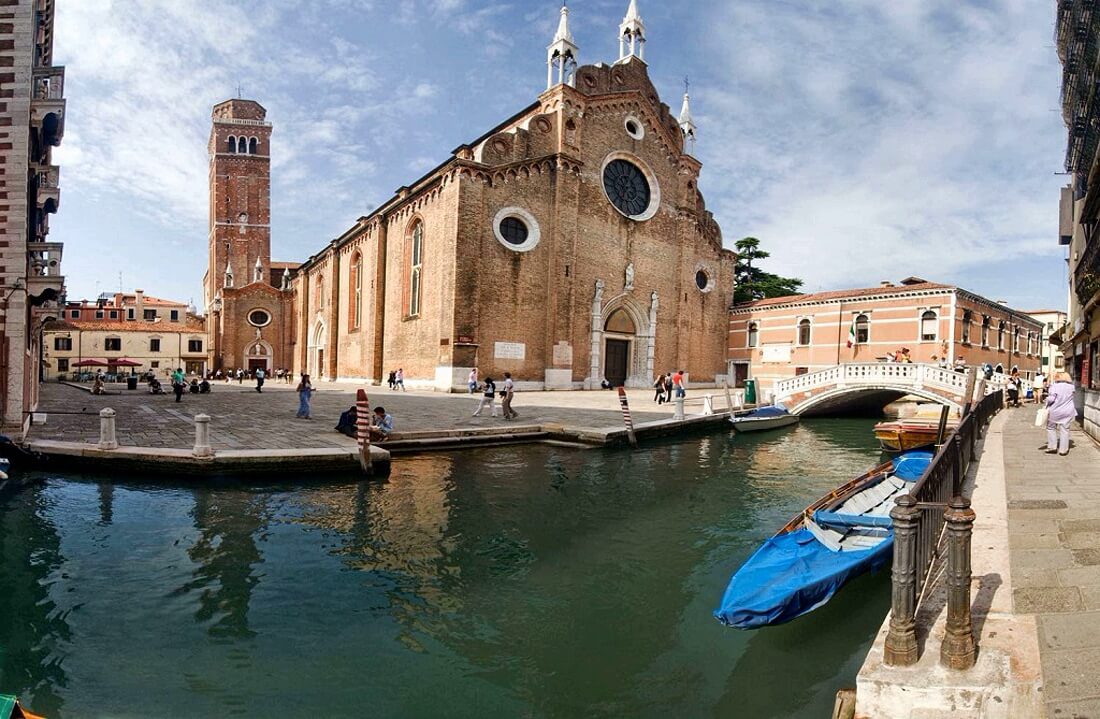 Bazilika genellikle Frari olarak biliniyor. Sade ve ifadesiz dış görünümüne karşılık içi çok ihtişamlı. Kilisenin yapımı yüzyıl sürmüş. Çan kulesi 14. Yüzyılda yapılmış.